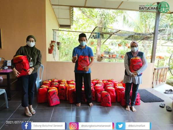 TBS Cawangan Miri : Penyerahan Bantuan Pek Makanan Kasih Kenyalang sebanyak 622 pek makanan bertempat di Mini UDC, Bilik Akadem Latihan Insan (ALI), Kompleks Islam Miri pada 16 Julai 2021.