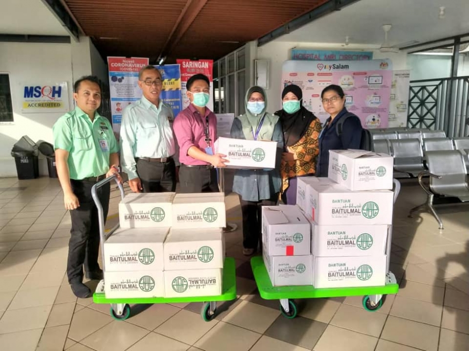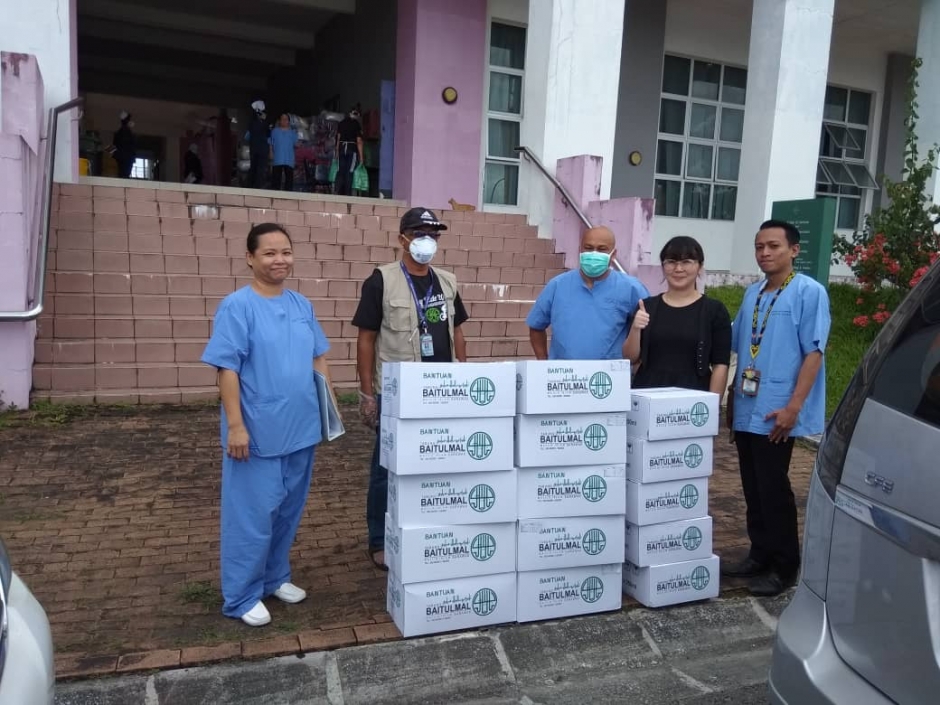 19 Mac 2020- Penyerahan bantuan keperluan asas oleh Tabung Baitulmal Sarawak kepada pihak Hospital Umum Sarawak untuk petugas dan mangsa Covid19, Kuching.